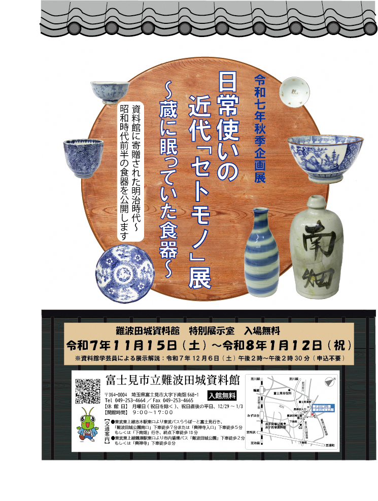 令和7年秋季企画展「日常使いの近代「セトモノ」展」 会期:令和7年11月15日(土)~令和8年1月12日(月・祝) 季節展示「お正月」1月上旬~2月上旬 |