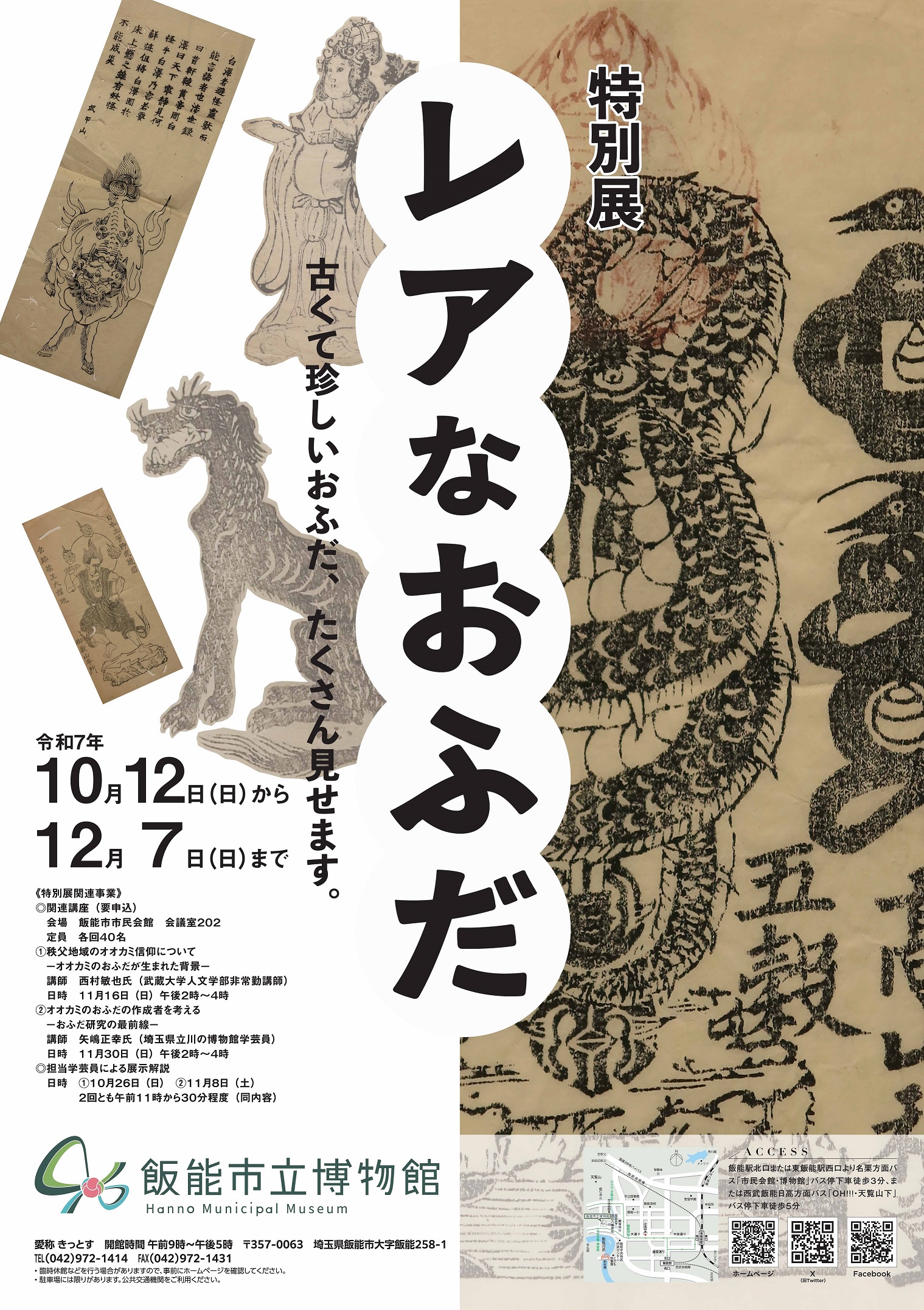 特別展「レアなおふだ」 会期:令和7年10月12日(日)~12月7日(日) 小学3年生見学対応展示「むかしのくらし」 会期:令和8年1月6日(火)~2月8日(日) |